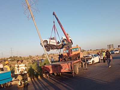 امدادرسانی آتش‌نشانان به مصدومان برخورد سمند و آریزو